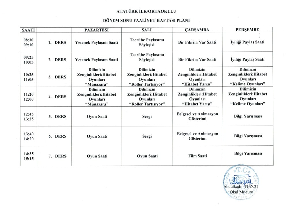 Faaliyet Haftası Programı